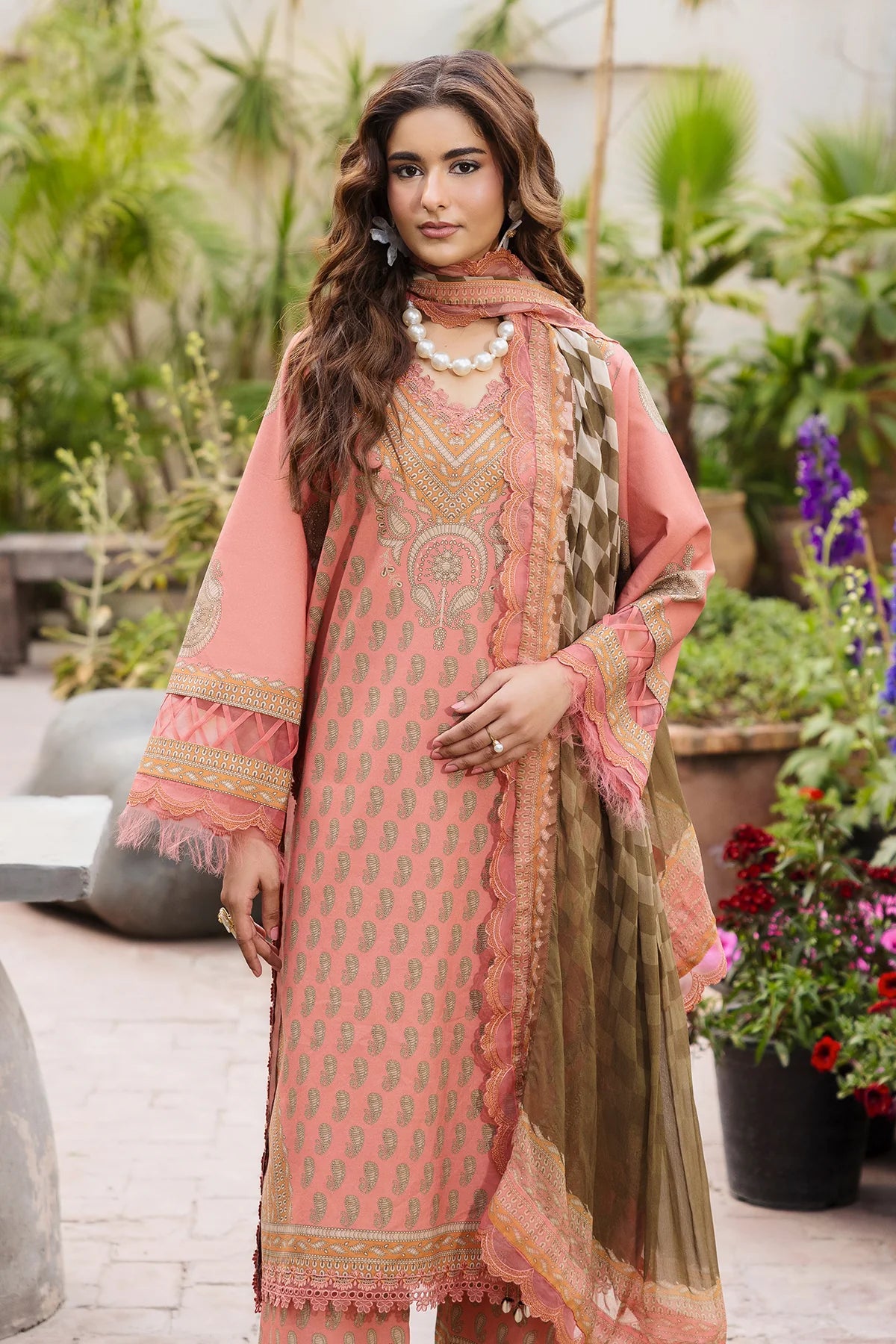 Embroidered Sleeves and Dupatta Pallu Patti 4 Meter