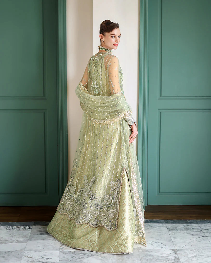 • Embroidered, sequined & hand embellished front daman right motif (net)